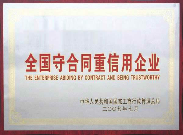 全國守合同重信用企業